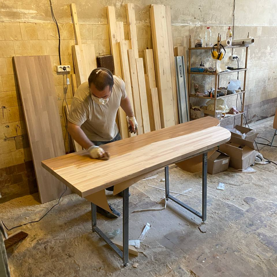 — Используем только натуральное дерево: ель, лиственница, дуб. Никакого ЛДСП! — Толщина наших столешниц 40 мм, чтобы древесину не вело и она максимально долго служила вам — Шлифуем поверхность столешницы, чтобы исключить занозы, шероховатости — Не оставляем острых углов, фрезеруем и шлифуем каждый угол, что дает безопасность и комфорт в использовании — Работаем с деревом низкой влажности (до 8%), делаем глубокую пропитку (до 2-3 мм) маслом и воском, что защищает от растрескивания древесины — После покрытия пропиткой поверхность столешницы матовая, гладкая, ровная