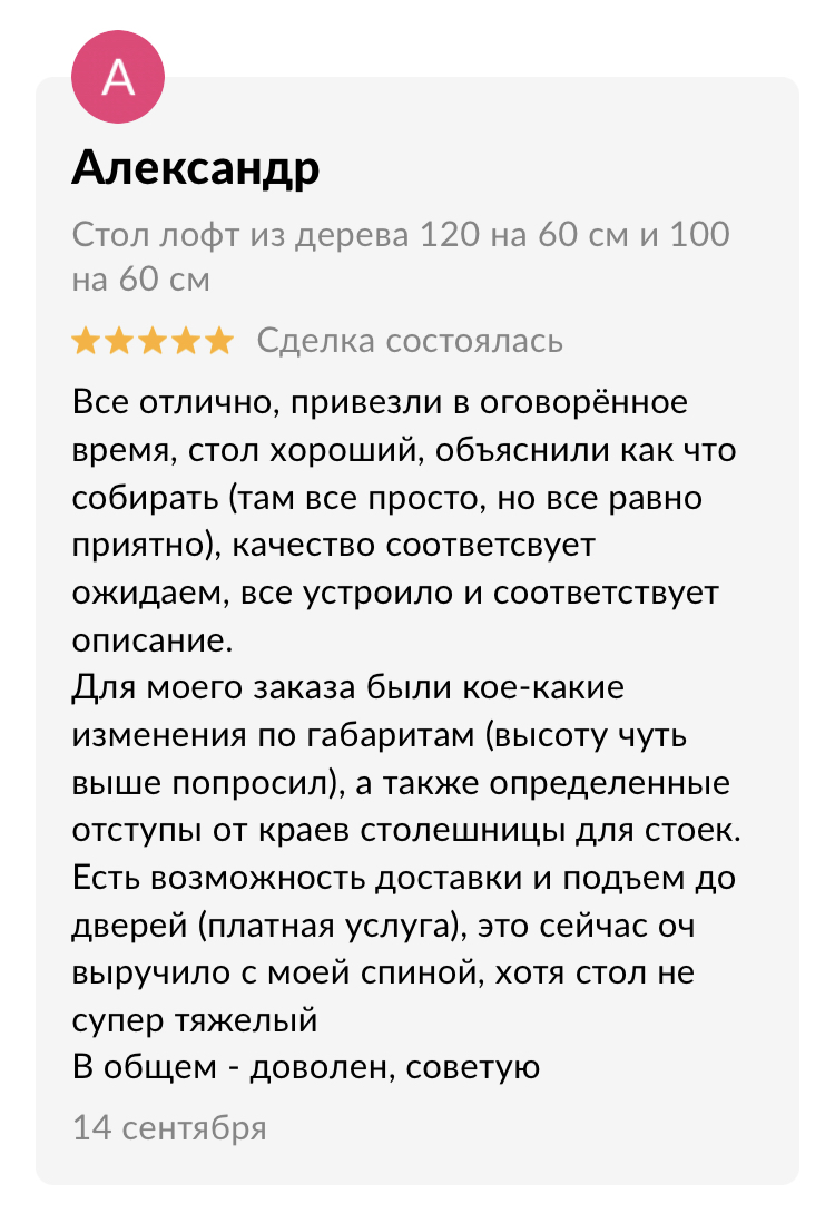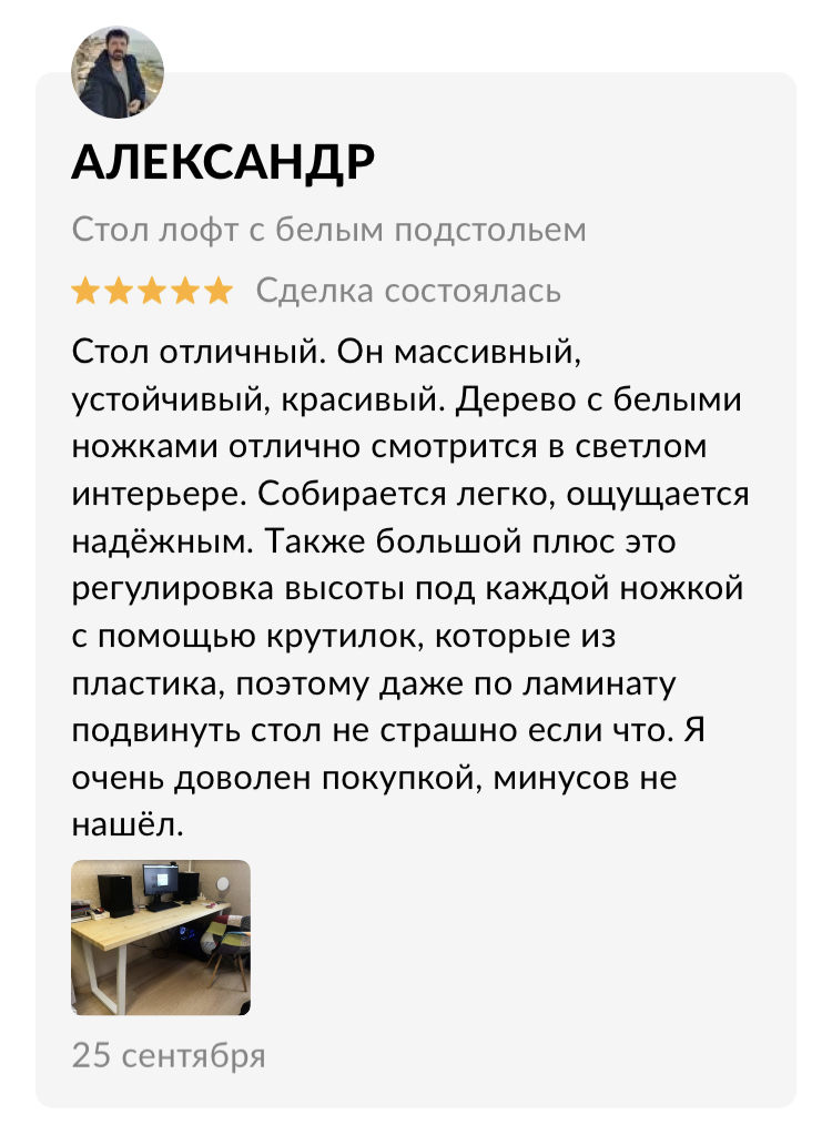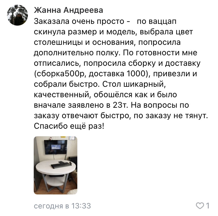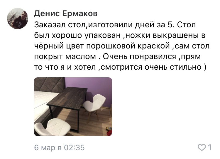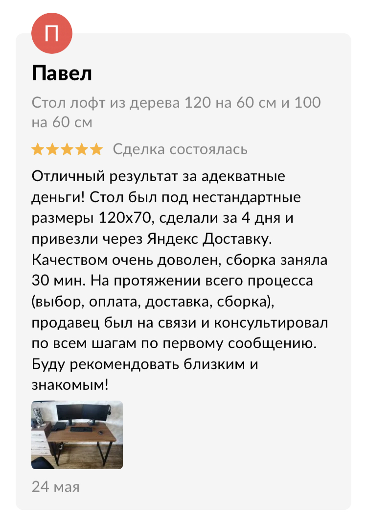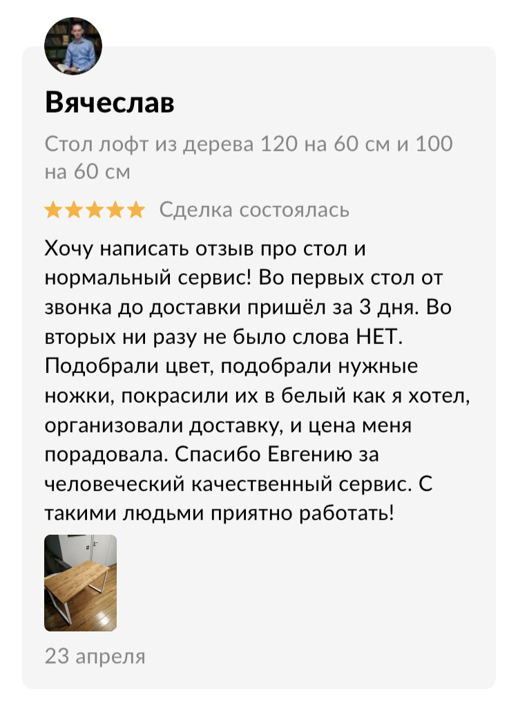 Сделаем стол к нужной дате, вы можете быть уверены, что в срок, который мы обозначили, стол будет готов и доставлен вам домой